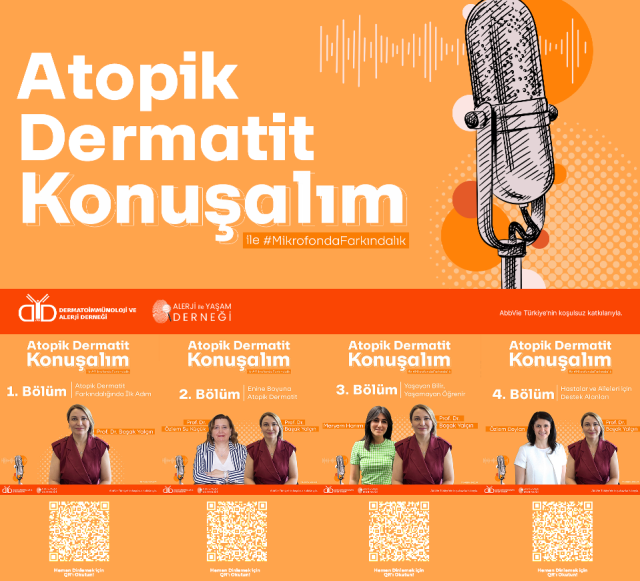 - Dermatoimmünoloji ve Alerji Derneği Başkan Yardımcısı Prof. Dr. Başak Yalçın’ın moderatörlüğünde hazırlanan “Atopik Dermatit Konuşalım” adlı podcast serisi toplumda farkındalığı artırarak, hastaların sağlık çözümlerine ulaşmaları için uzman hekimlere başvurmalarını sağlamayı amaçlıyor.