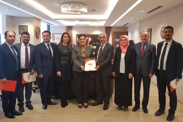 28.11.2019 tarihinde Aile Hekimleri Dernekleri Federasyonu adına Yönetim Kurulu Başkanı Dr. Özlem Sezen , 2.Başkan Dr. Yakup Şahin, 2.Başkan Dr. Hacı Yusuf Eryazgan , Genel Sekreter Uzm.Dr. Hüseyin Güntürkün , Yönetim kurulu üyeleri Dr. Rıdvan Karagöz ve Dr. Hazar Cırık , Sağlık Bakan Yardımcımız Sayın Prof.Dr.Emine ALP MEŞE ‘ yi makamında ziyaret etmiştir.