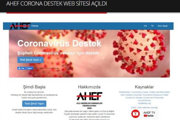 Bir rehber niteliğindeki www.ahefcoronavirus.com ve Corona virüs bilgilendirme sitesidir. AHEF Yönetim Kurulu’ndan yapılan açıklamada, “Aile Hekimleri Dernekleri Federasyonu olarak, ülkemizin Covid -19 salgın dönemini en az kayıpla atlatmasına katkı sunmak, izolasyona dikkat çekmek, bireylerin olası semptomlarını, risk durumlarını kontrol edebildiği, şüpheli vaka gruplarına göre kişilere yönlendirmeler yapmaya, rehberlik etmeye fayda sağlayacak bir siteyi halkımız için hayata geçirdik. Ancak bizim dahi şaşırdığımız bir durum oldu ve site içerisinde yer alan risk hesaplama anketine 2 günde 180 bin başvuru olduğunu gördük. Bu da gösteriyor ki insanlarımız Covid-19 ile ilgili hala bilgiye aç ve yönlendirilmeye muhtaç. Endişe ve kaygı içerisindeler. Biz de bu durumları aşmaları için onları en iyi şekilde desteklemeye çalışacağız. Faydalı ve yol gösterici olmasını ümit ediyoruz. ”