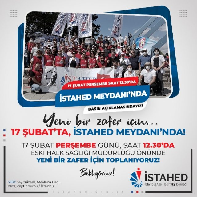 İSTAHED olarak bu kapsamda 17-18 Şubat 2022‘de 2 gün, geri adım atılmadığı taktirde 14-15-16 Mart 2022‘de 3 gün İŞ BIRAKACAĞIMIZI kamuoyuna duyuruyoruz.