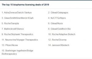 2019 yılında biofarmada dünya lisans anlaşmalarının ilk on beşinin toplam tutarı 41 Milyar USD ye ulaştı.2019 will likely go down as a landmark year...