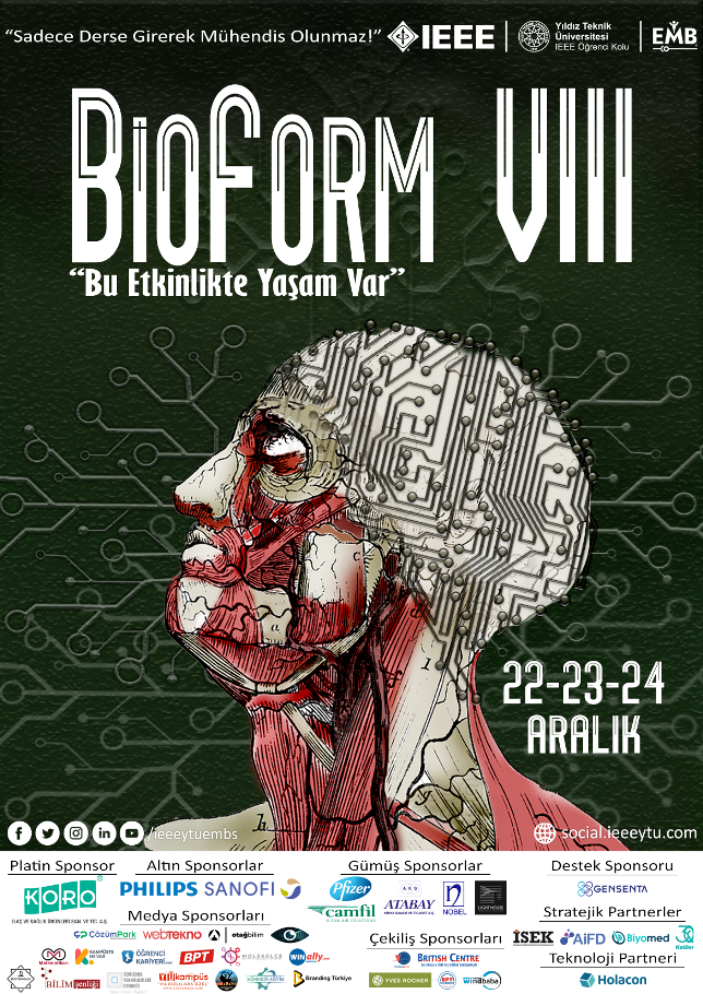 IEEE YTÜ EMB Komitesi olarak “Bu Etkinlikte Yaşam Var” mottosuyla çıktığımız bu yolda bu sene sekizincisini düzenleyeceğimiz BioForm’da tıpta mühendislik uygulamaları, ilaç, genetik, medikal, biyoteknoloji gibi çeşitli sektörlerden şirketleri, alanında uzman konuşmacıları ve akademisyenleri ağırlayacağız. Etkinliğimiz 22-23-24 Aralık’ta Holacon platformunda gerçekleşecektir.