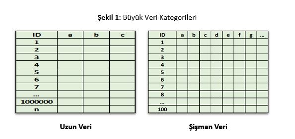 Büyük veri kendi içerisinde uzun veri (tall data) ve şişman veri (fat data) olmak üzere iki kategoride incelenir.
