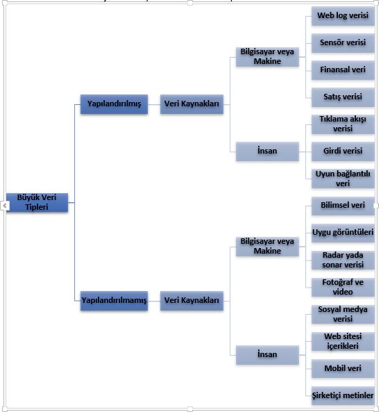 Anlatılanları somutlaştırmak adına büyük veri kategorileri Şekil 1 üzerinde verilmiştir.