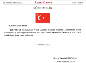 Devlet memurlarının yarı zamanlı çalışma hakkının çerçevesini belirleyen yönetmelik Resmî Gazete’de yayımlandı. Yönetmelik, özellikle ebeveynlik ve özel hayatla iş dengesini korumak isteyen memurlar için önemli kolaylıklar getiriyor.