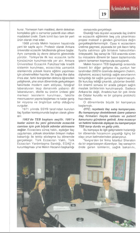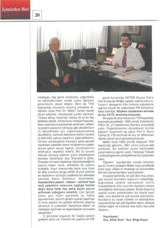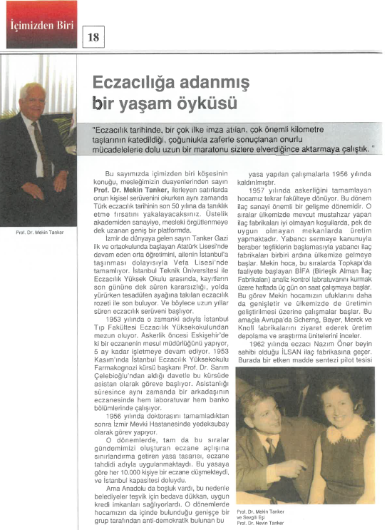 Eczacılık tarihinde bir çok ilke imza atan çok kıymetli meslek büyüğümüz, hocamız Prof.Dr.Mekin Tanker ile gerçekleştirilen söyleşinin kaleme alındığı yayını ekte sunuyoruz.