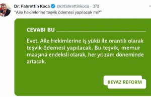 Sağlık Bakanı Fahrettin Koca, sosyal medya hesabından yaptığı paylaşımda aile hekimlerinin yeni yönetmeliğine ilişkin merak edilen sorulara yanıt verdi;“Aile Sağlığı Merkezi çalışanları yeni imkânlardan...