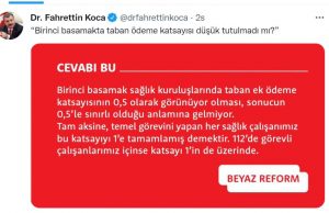 Cumhurbaşkanı Recep Tayyip Erdoğan, Cumhurbaşkanlığı Külliyesi'ndeki Kabine Toplantısı'nın ardından millete seslendi.Cumhurbaşkanı Erdoğan ve Bakan Koca yaptığı paylaşımlarda Beyaz Reform ile gelişmeleri paylaştılar:https://twitter.com/RTErdogan/status/1566898968545484800https://twitter.com/drfahrettinkoca/status/1566884720293683202https://twitter.com/drfahrettinkoca/status/1566894400591958018
