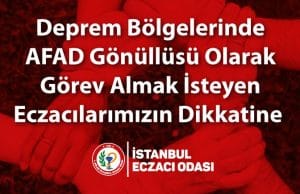 Deprem Bölgelerinde AFAD Gönüllüsü Olarak Görev Almak İsteyen Eczacılarımızın Dikkatine / İEO