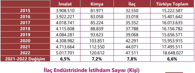İlaç endüstrisi istihdamı 2022 yılında, 3.440 kişi artarak %7,8 büyüme göstermiş ve