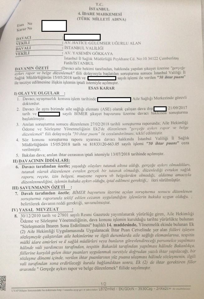 Oysa idare, hastanın bir sözüne, telefondaki bir ifadeye dayanan incelemecinin kararına güvendi.Hem de tuttuğu tutanağın ”gerçeğe aykırılığını” gerekçe göstererek.