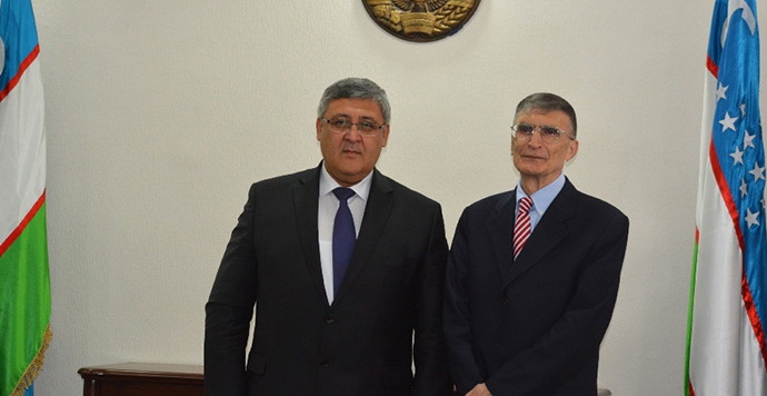 Türk İşbirliği ve Koordinasyon Ajansı Başkanlığının (TİKA) aracılığıyla Özbekistan Milli Üniversitesinin davetlisi olarak ülkeye gelen Prof. Dr. Aziz Sancar, Özbekistan Yüksek ve Orta Meslek Eğitimi Bakanı İnam Mecidov tarafından kabul edildi. TİKA Taşkent Program Koordinatörü Ali İhsan Çağlar ve Özbekistan Milli Üniversitesi Rektörü Avaz Marahimov’un da hazır bulunduğu görüşmede konuşan Sancar, ’’ kendisini bir Türkiye Türkü olduğu kadar Özbekistan Türkü olarak da gördüğünü, o bakımdan Özbekistan’da kendisini vatanında hissettiğini’’ belirtti.