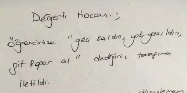 Derse geç kaldığı için “yok” yazılan öğrenciden öğretmeni sağlık raporu istedi. Rapor talep edilen doktor tarafından öğretmene cevap yazıldı. İlginç cevap sosyal medyada kısa sürede yayıldı.