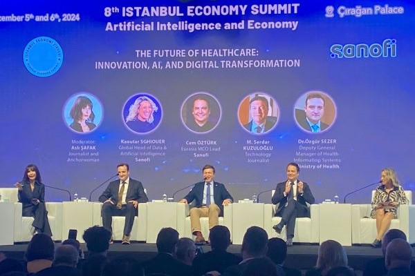 Sanofi, bu sene 8.’nci kez gerçekleşen İstanbul Ekonomi Zirvesi’nde bir kez daha yerini aldı. İstanbul Ekonomi Zirvesi’de yapay zekâ pek çok farklı sektör açısından uzmanların bir araya geldiği oturumlarda masaya yatırıldı. Sanofi etkinlikte yapay zekâ ve inovasyonun insan sağlık sektörü ve insan sağlığı üzerinde yaratacağı gelişmeleri değerlendirmek üzere, 5 Aralık tarihinde “Sağlığın Geleceği: İnovasyon, yapay zekâ ve dijital dönüşüm” başlıklı panelde konuşmacıları ile yer aldı. Moderatörlüğünü gazeteci Aslı Şafak’ın üstlendiği oturumda Sanofi Veri ve Yapay Zekâ Global Başkanı Kaoutar Sghiouer, Sanofi Avrasya Bölge Başkanı Cem Öztürk, Teknoloji Yazarı Serdar Kuzuloğlu ve T.C. Sağlık Bakanlığı Sağlık Bilgi Sistemleri Genel Müdür Yardımcısı Dr. Özgür Sezer de panelist olarak görüşlerini belirttiler.