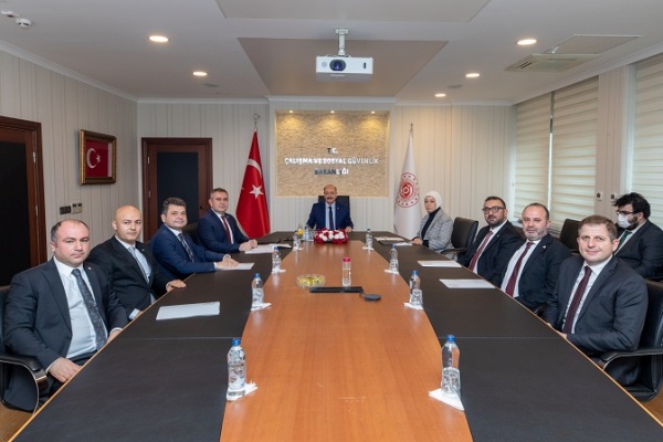 Türk Eczacıları Birliği Başkanı Ecz.Arman Üney, Türk Eczacıları Birliği II. Başkanı Ecz.İhsan Orkun Yılmaz, Türk Eczacıları Birliği Genel Sekreteri Ecz.Saygın Garğın, Türk Eczacıları Birliği Saymanı Uzm.Ecz.Tahir Özelçi, Türk Eczacıları Birliği Merkez Heyeti Üyesi Ecz.Ali Erdem, Türk Eczacıları Birliği Merkez Heyeti Üyesi Ecz.Uğur Elik, Türk Eczacıları Birliği Merkez Heyeti Üyesi Ecz.Fehmi Onur Özgüven, 29.12.2021 tarihinde Türkiye Cumhuriyeti Çalışma ve Sosyal Güvenlik Bakanı Sayın Prof.Dr. Vedat Bilgin’i makamında ziyaret ettiler.