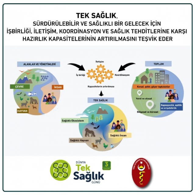 3 Kasım Dünya Tek Sağlık Günü’nün insanlığın sağlığına ve huzuruna vesile olmasını temenni ediyor, Tek Sağlık konseptinin temel meslek grubu konumunda olan veteriner hekim tüm meslektaşlarımızın bu gününü kutluyorum.