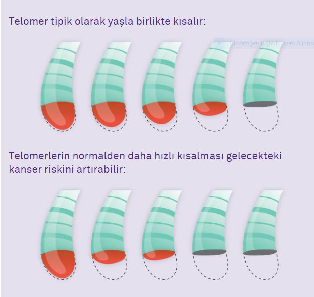 Kromozomların hücre bölünmesi sırasında zarar görmesini önleyen telomerlerin boyu yaşlandıkça kısalıyor.