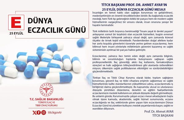 TİTCK Başkanı Dr. Ahmet Ayar’ın Dünya Eczacılık Günü Mesajı