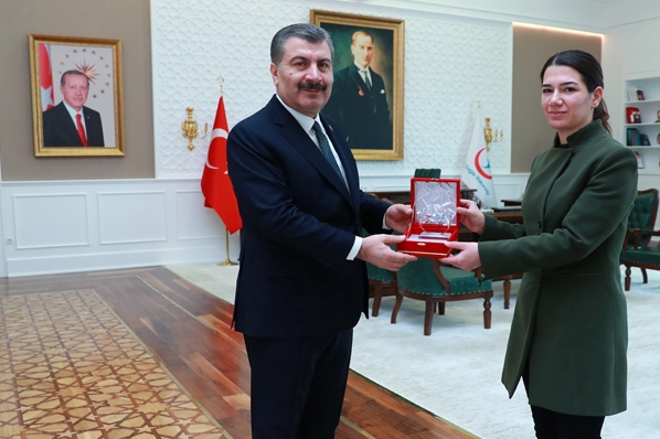 Sağlık Bakanı Dr. Fahrettin Koca, TÜRKÖK projesi ile kemik iliği ve kök hücre bağışında bulunan 52 yaşındaki Abdullah Tanrıverdi (1000. naklin bağışçısı) ile 27 yaşındaki Ceylan Şener (1001. naklin bağışçısı) ile bir araya gelerek iki bağışçıya plaket verdi. Gülhane Eğitim Araştırma Hastanesi Başhekimi Prof. Dr. Mehmet Ali Gülçelik, Hematoloji Bölümünden Prof. Dr. Meltem Aylı ve Uzm. Dr. Gökhan Özgür, Bakanlık’taki kabulde bağışçılara eşlik etti. Bakan Fahrettin Koca, nakilleri gerçekleştiren hekimlere teşekkür belgesi takdim etti.
