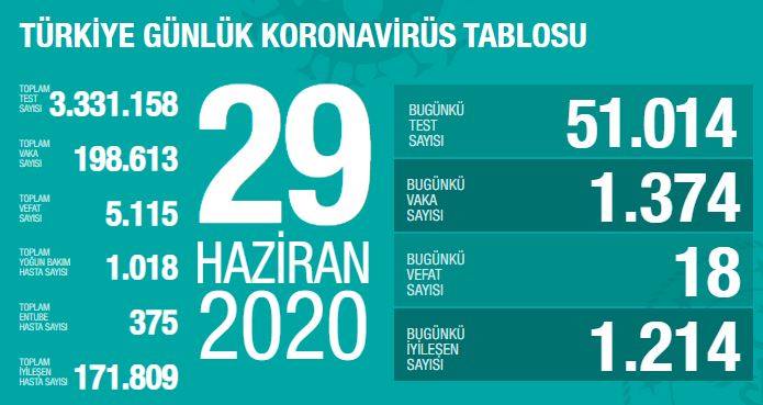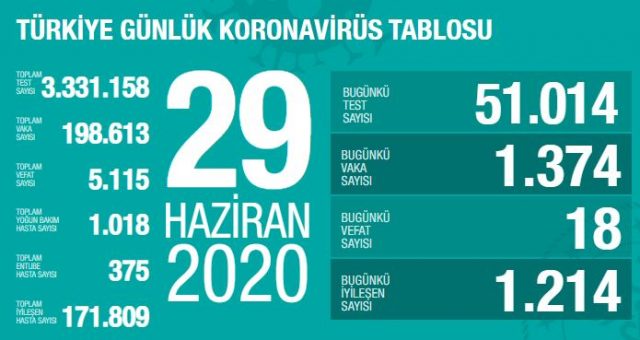 Vaka sayımız dünkünden 18, bugün iyileşenlerdense 160 fazla. Yatırılarak tedavi edilenlerle yeni taburcu edilen hastaların sayısı dengede. Yoğun bakımdaki artış olağan düzeyde.