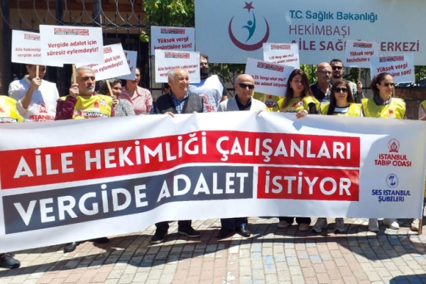 Türk Tabipleri Birliği Aile Hekimliği Kolu (TTB AHEK) ile Sağlık ve Sosyal Hizmet Emekçileri Sendikası’nın (SES) “Aile Hekimliği ve Sağlık Çalışanları Vergide Adalet İstiyor” başlıklı eylemleri, 11. haftasında devam etti.