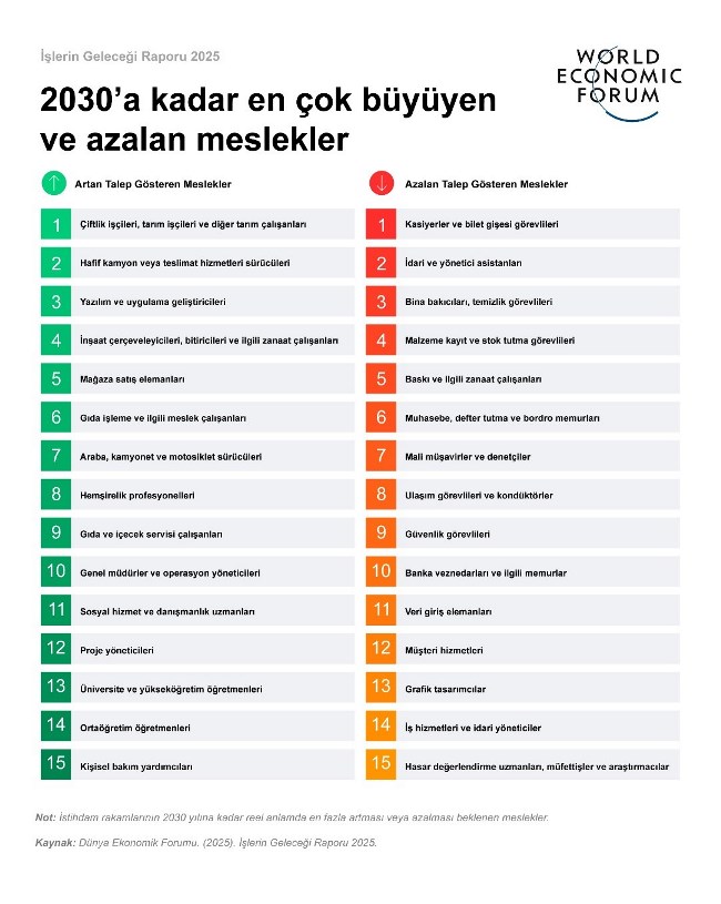 Dünya Ekonomik Forumu tarafından bugün yayımlanan 2025 İşlerin Geleceği Raporu, mesleklerin geleceğine dair önemli veriler sunuyor.