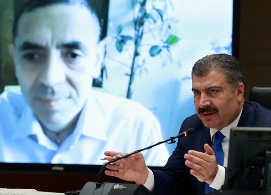 Bakan Koca, video konferans yöntemi ile bağlantı sağlayan Uğur Şahin’e söz vermeden önce, “Bugün özellikle Uğur hocamızın bazı görüşlerini bizzat kendisinden duymanızı istiyoruz. Uğur Hocam 27 Aralık’ta ilk sözleşmemizi yapmıştık ve ondan 3 ay önce başlayan görüşmelerimiz olmuştu ve bu süreçte neredeyse haftada en az 2 kere telefonla görüşmelerimiz oldu. Çok büyük gayret gösterdiniz. Öncelikle 1 milyondan başlayarak 4,5 milyona sonra opsiyonel olarak, 30 milyona sonra 60 milyona devamında 90 milyona ve en son 120 milyon dozluk anlaşma sizlerin yoğun gayret, efor ve çabanızla imzalanmış oldu” dedi.